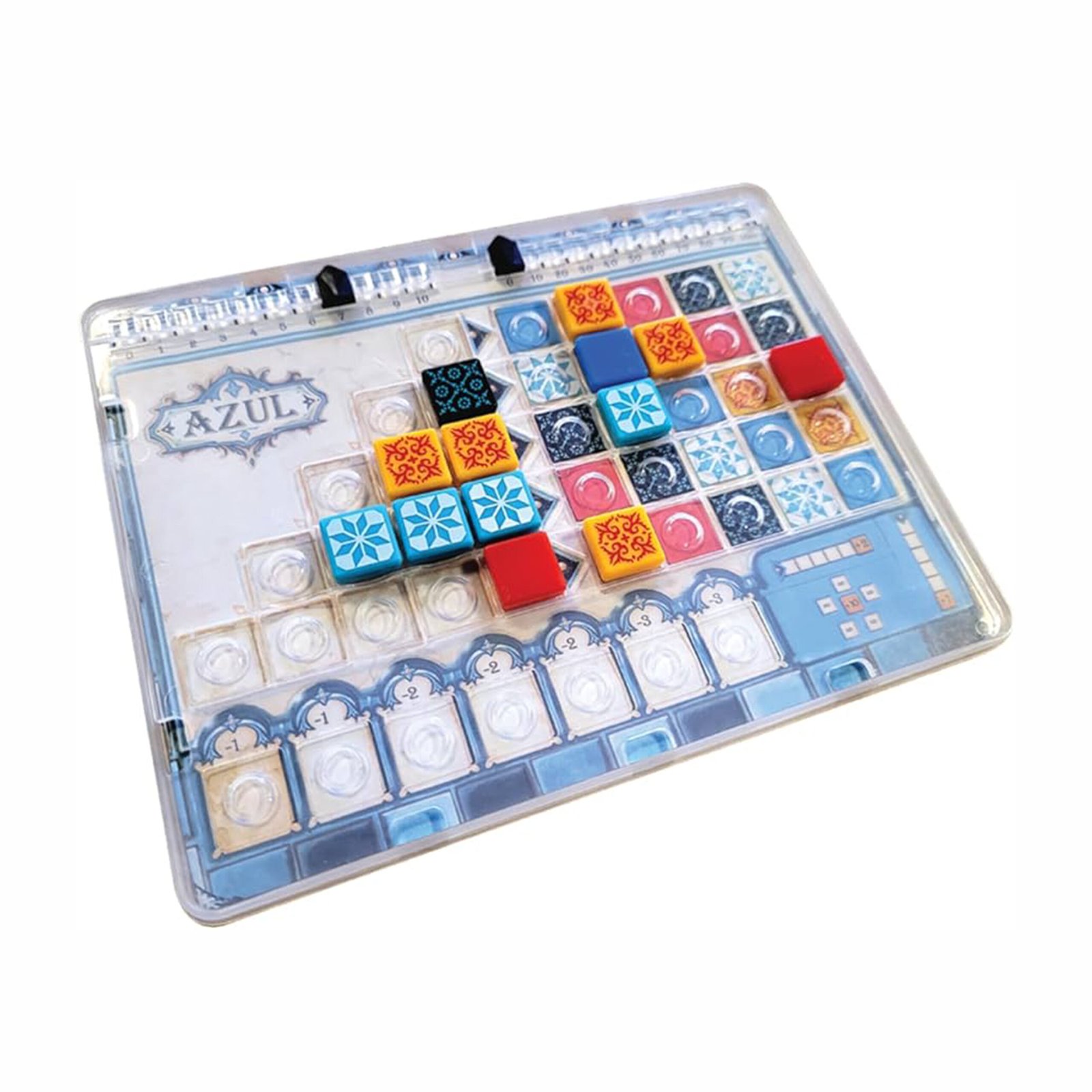Em Azul, os jogadores são artesãos responsáveis por decorar as paredes do palácio real com belíssimos azulejos portugueses. A cada rodada, você escolhe peças coloridas das fábricas disponíveis e as posiciona no seu tabuleiro para formar padrões e completar o mosaico.