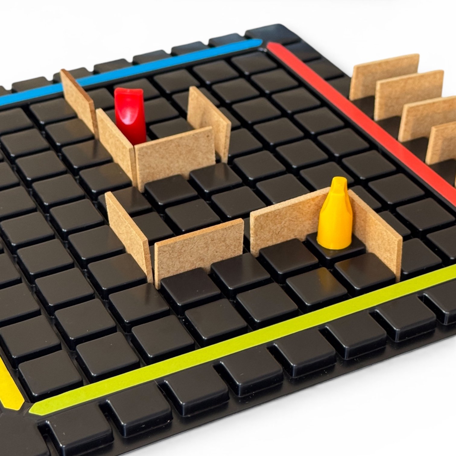 A cada turno, você decide entre avançar com seu peão ou posicionar uma parede para bloquear o trajeto dos outros jogadores. O desafio é criar obstáculos estratégicos sem bloquear completamente o caminho de ninguém.
