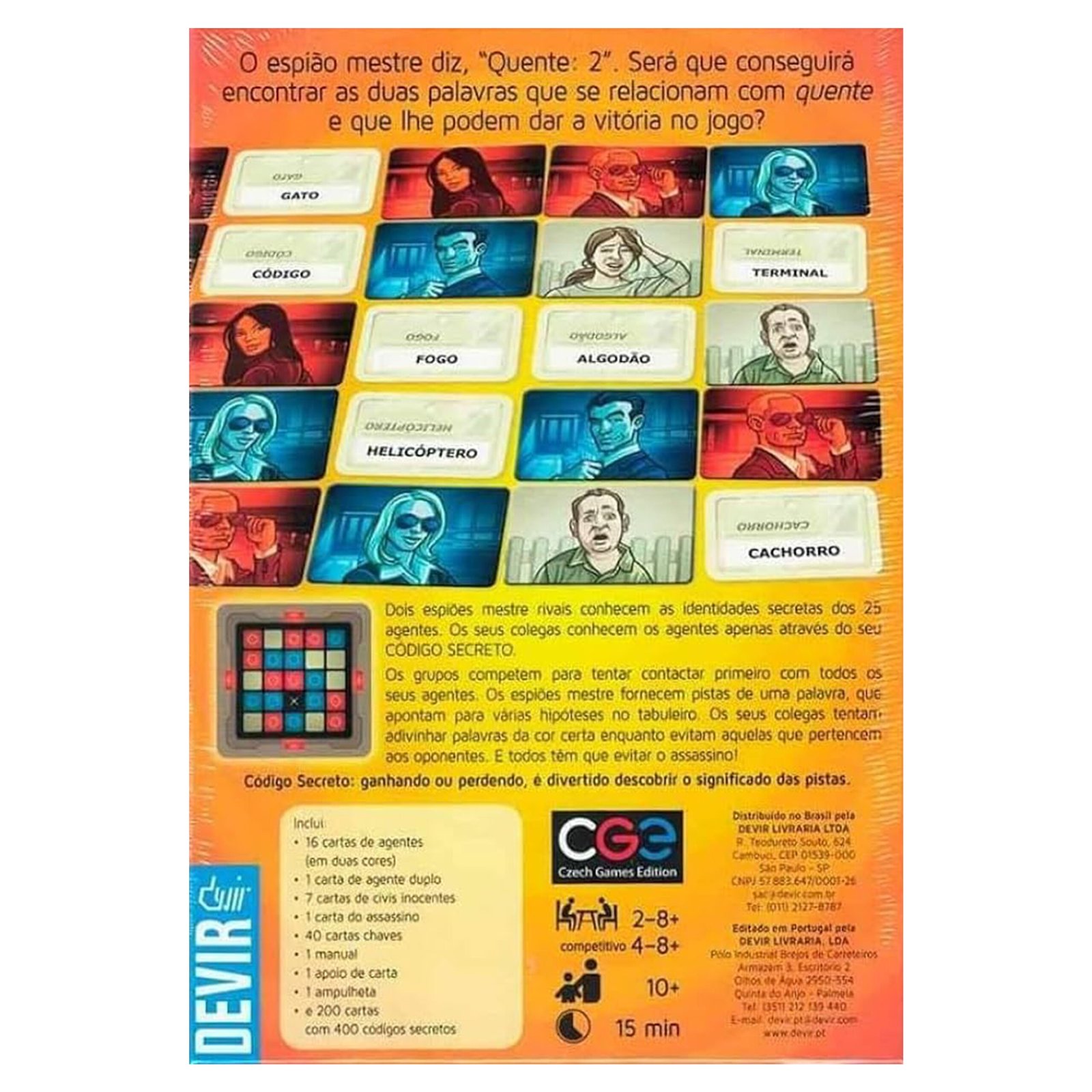 Cada equipe tem um mestre-espião que dá dicas de uma única palavra para ajudar seus companheiros a identificar as palavras corretas no tabuleiro. O desafio é conectar várias palavras com uma única pista, sem levar seu time a escolher palavras do adversário ou pior, o assassino.