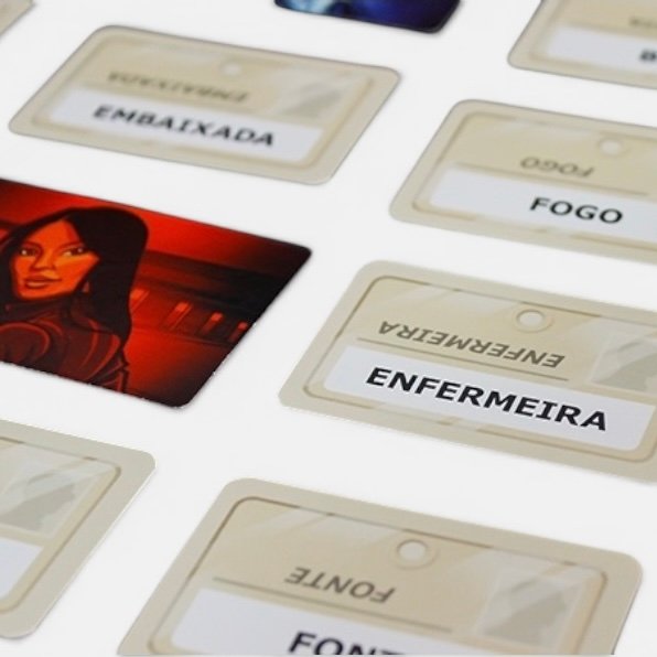 Jogo de palavras em equipe onde dicas conectam pistas e levam à vitória.
