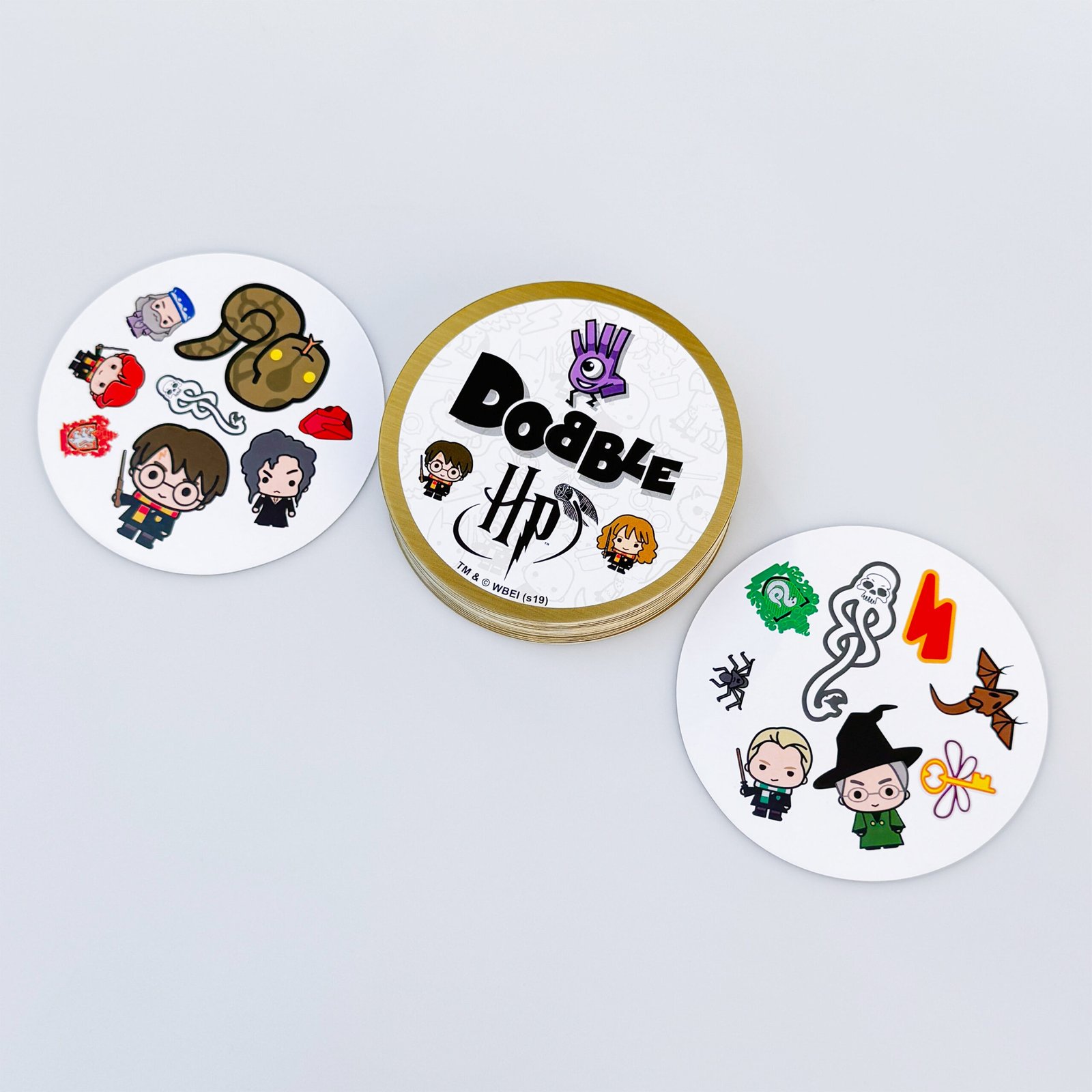 Em Dobble: Harry Potter, os jogadores precisam ser rápidos para encontrar símbolos iguais entre as cartas, agora com elementos do mundo mágico como varinhas, personagens e itens de Hogwarts.