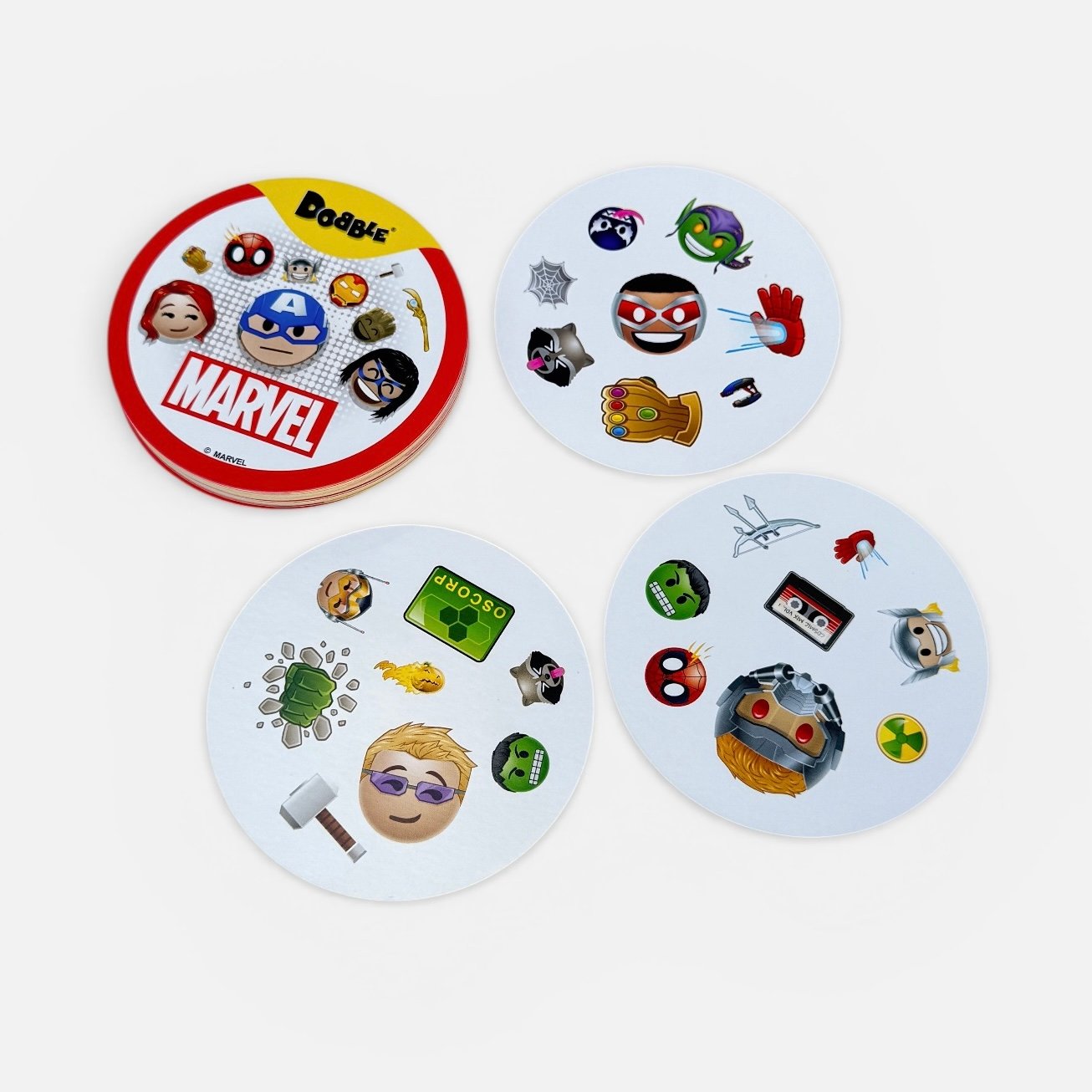 Em Dobble: Marvel, quem tiver os reflexos mais rápidos e encontrar os símbolos primeiro vence.