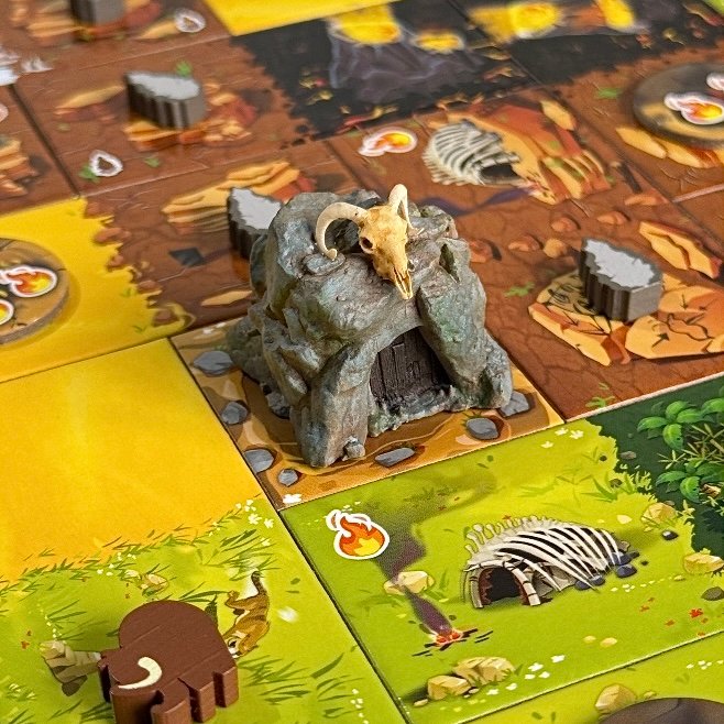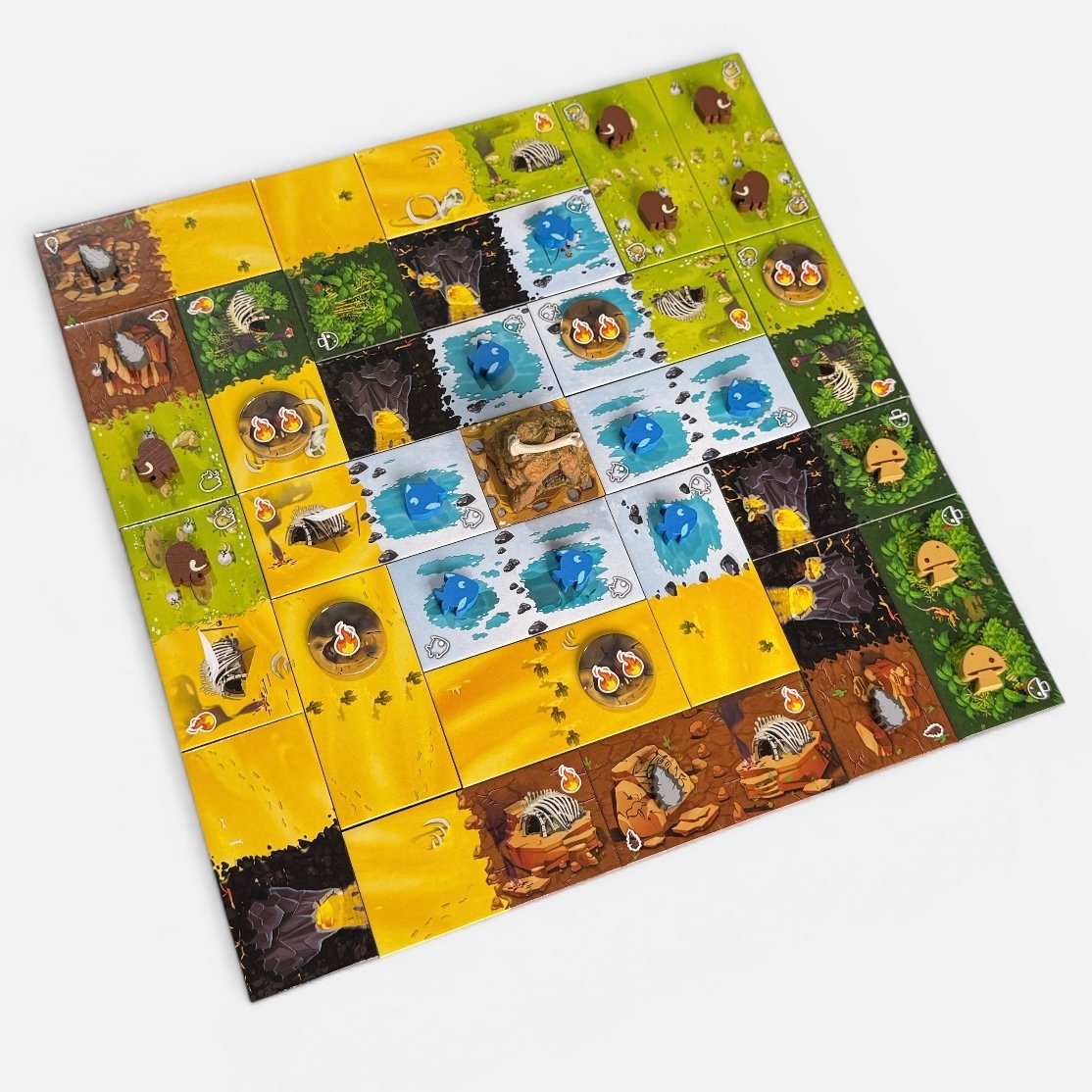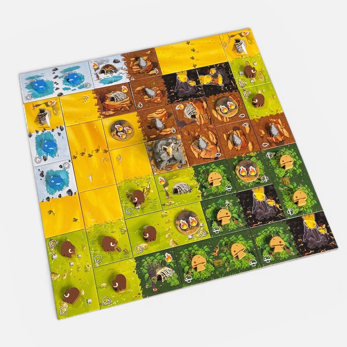 Nesta versão evoluída de Kingdomino, além de criar territórios, os jogadores também coletam recursos naturais e usam vulcões para gerar fogo — elemento essencial para desenvolver sua tribo e conquistar mais pontos.