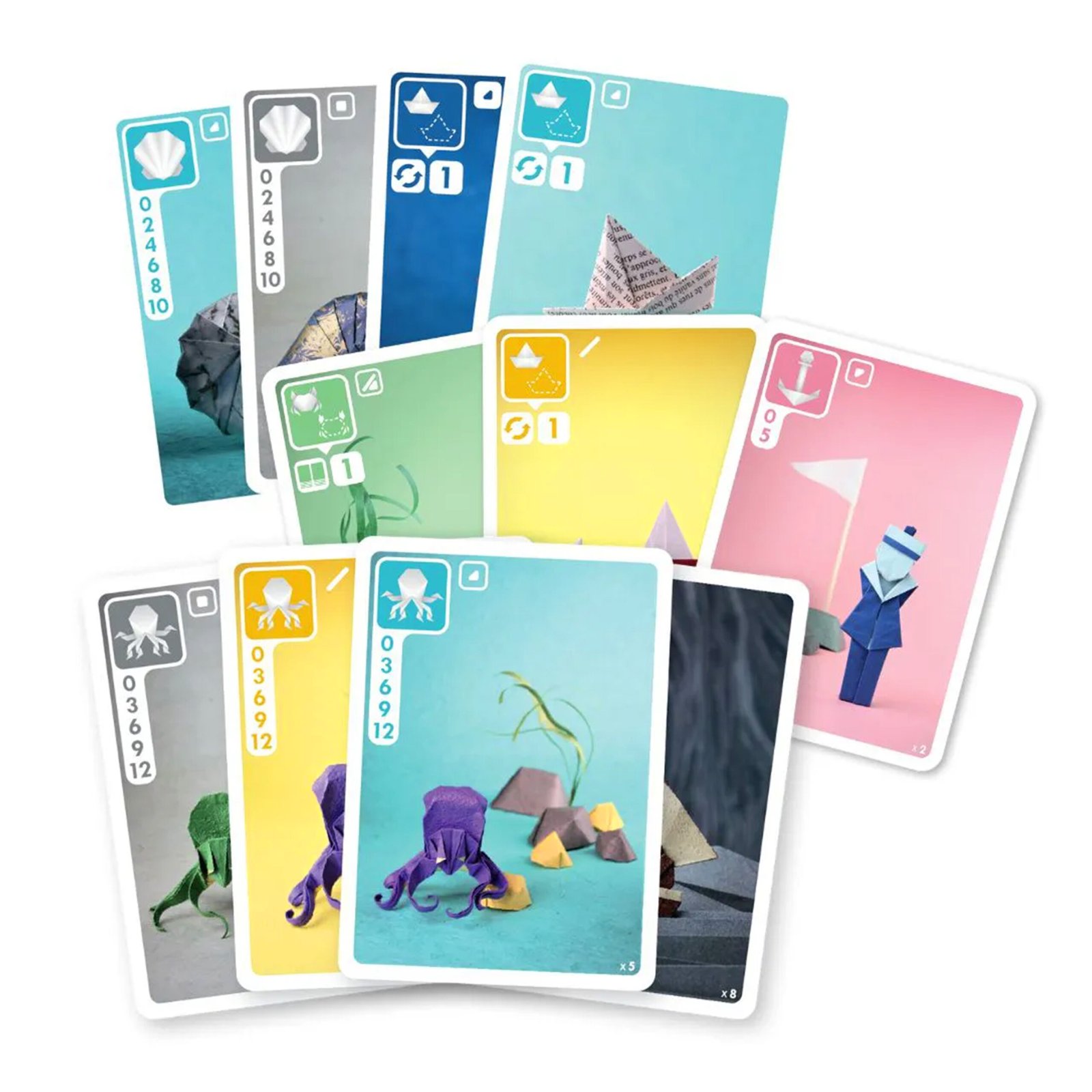 Em Sea, Salt & Paper, os jogadores mergulham em um universo marinho feito de cartas com ilustrações inspiradas em origami. O objetivo é formar combinações de cartas que rendem pontos e ativam habilidades especiais.