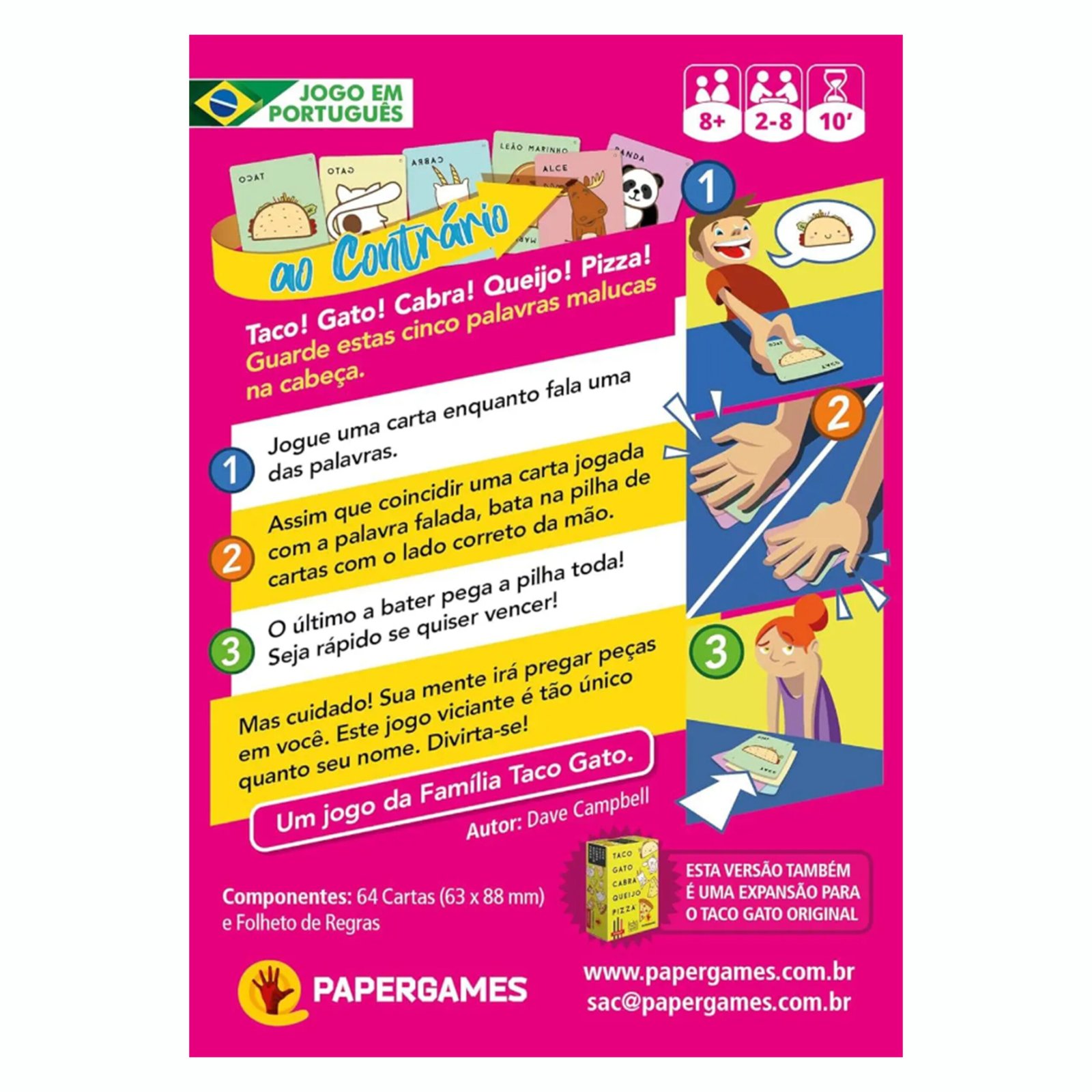 Nessa versão de Taco Gato… as regras são invertidas, exigindo ainda mais atenção e reflexos dos jogadores. Vence quem aliminar todas as cartas primeiro.