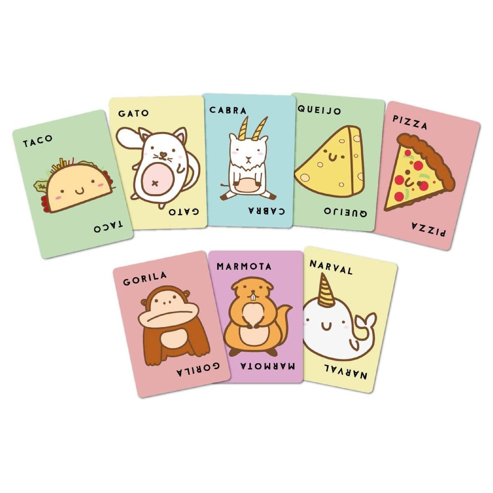 Os participantes se revezam falando as palavras “taco, gato, cabra, queijo, pizza” enquanto viram cartas. Quando a palavra falada combina com a carta revelada, todos devem bater na pilha o mais rápido possível. Quem for mais lento acaba levando todas as cartas!