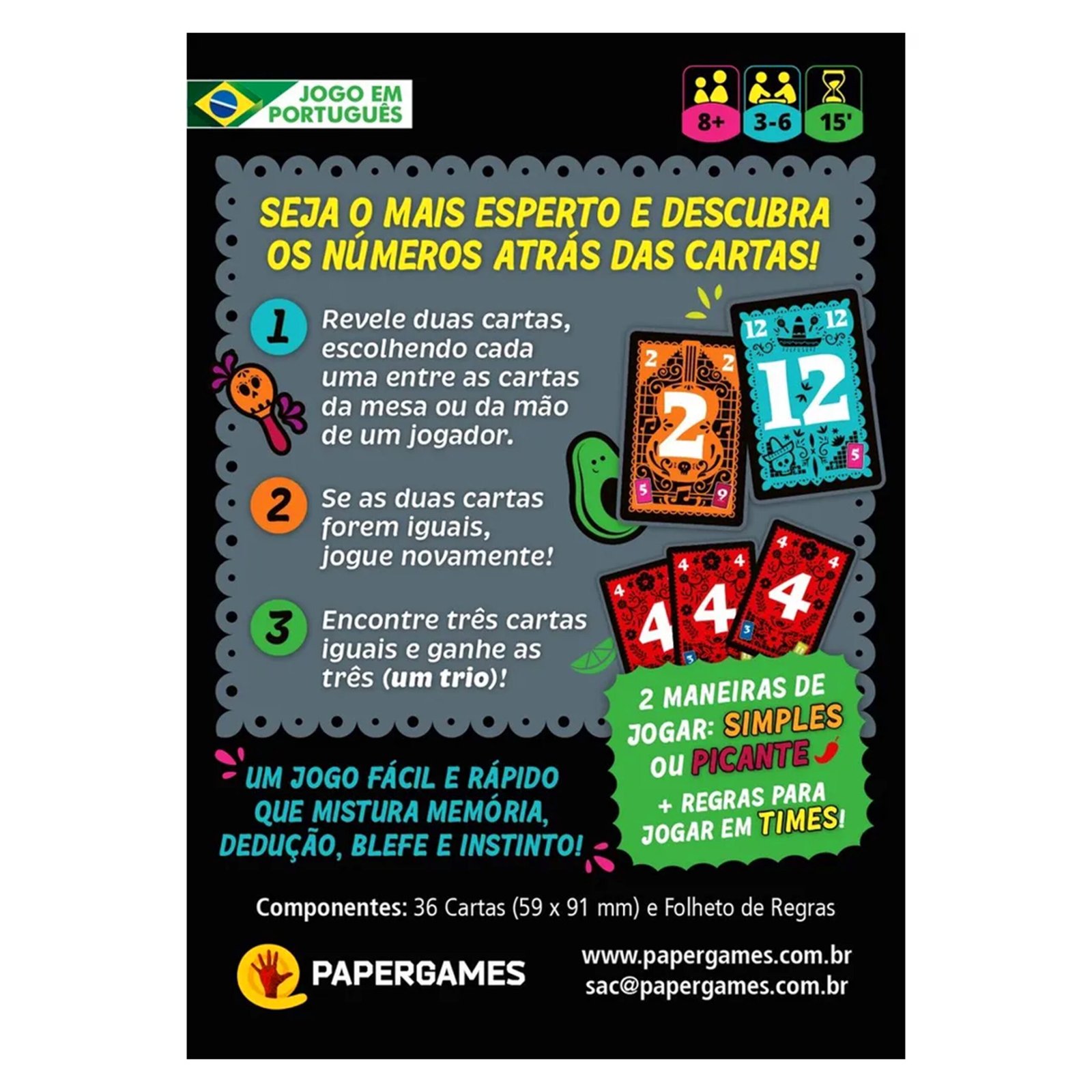 Com regras simples e partidas rápidas, Trio é um jogo cheio de momentos de surpresa, estratégia e memória.